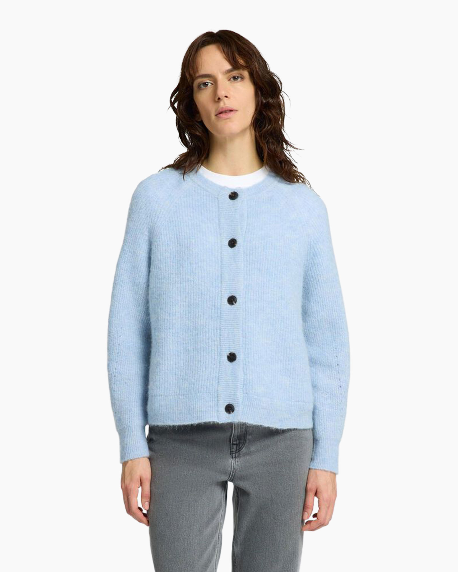 vest in een normale pasvorm, afgewerkt met geribde manchetten en knopen aan de voorzijde.