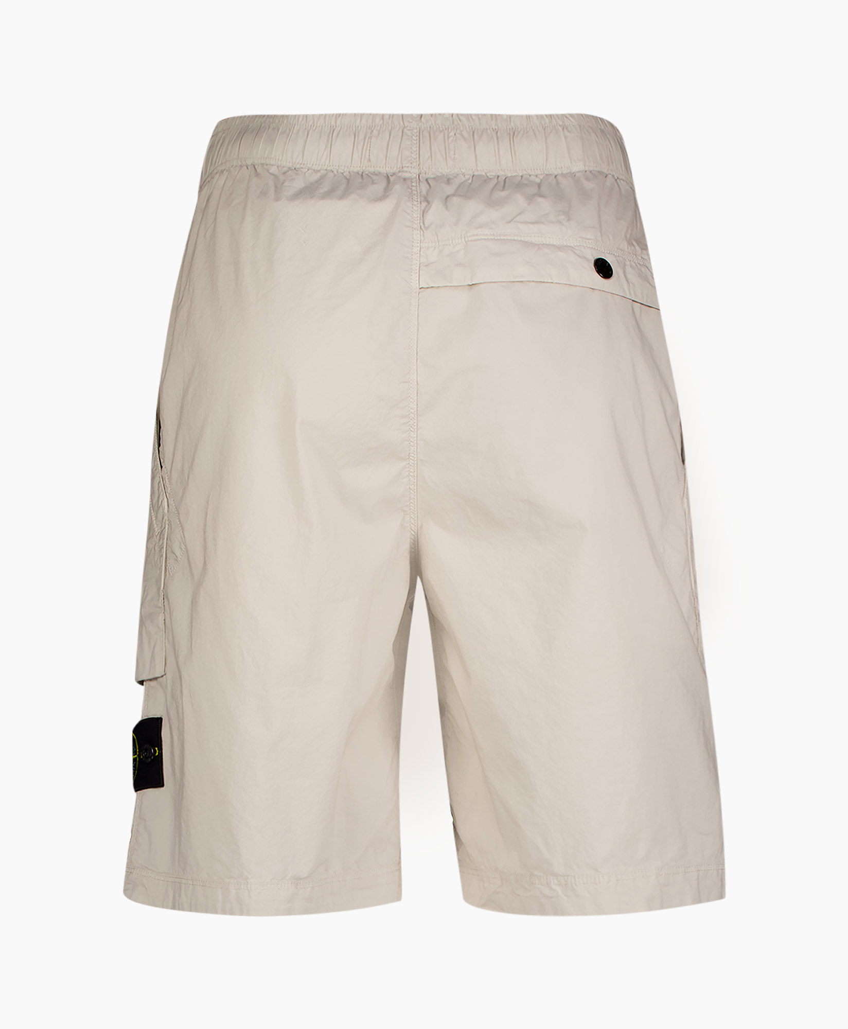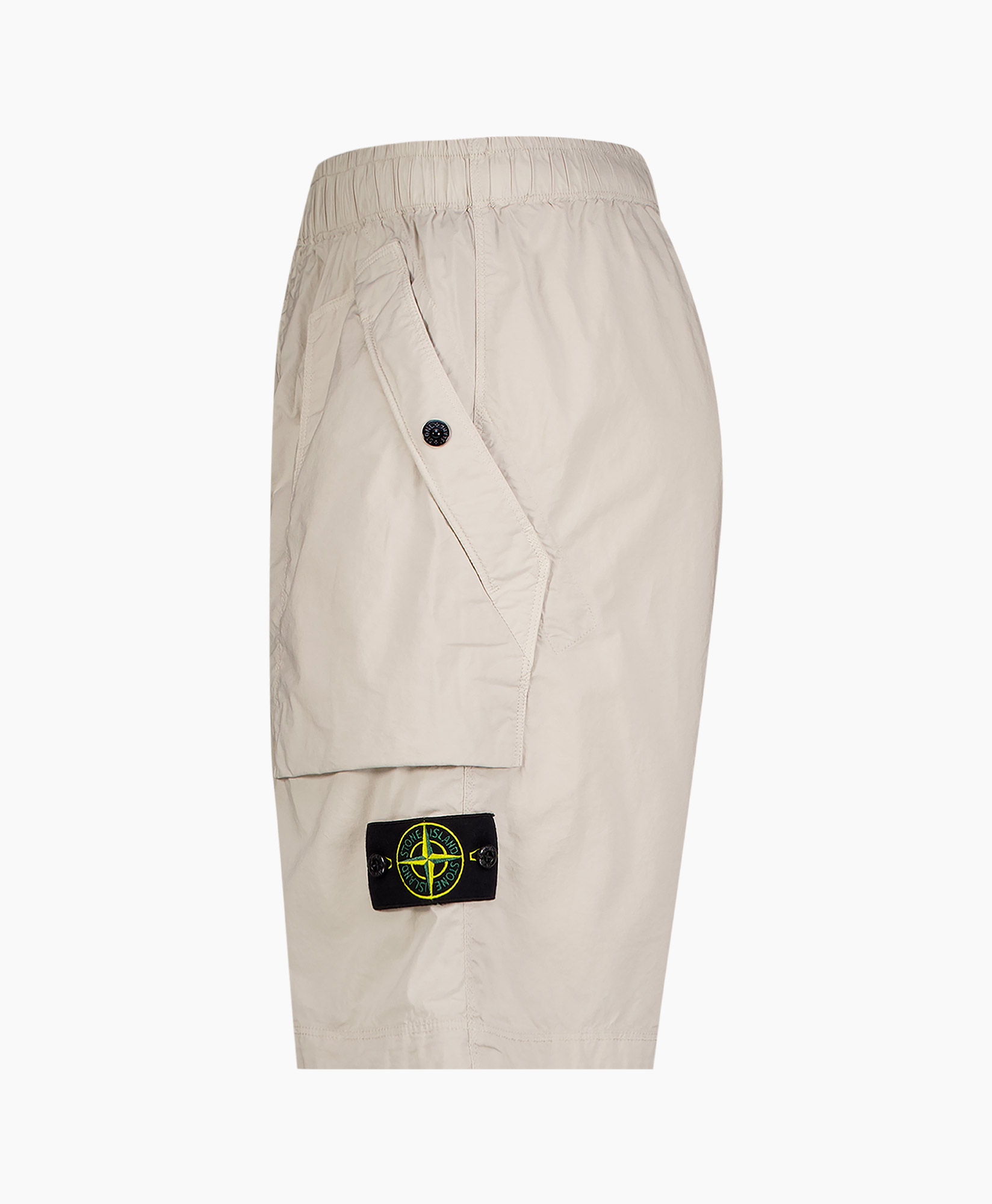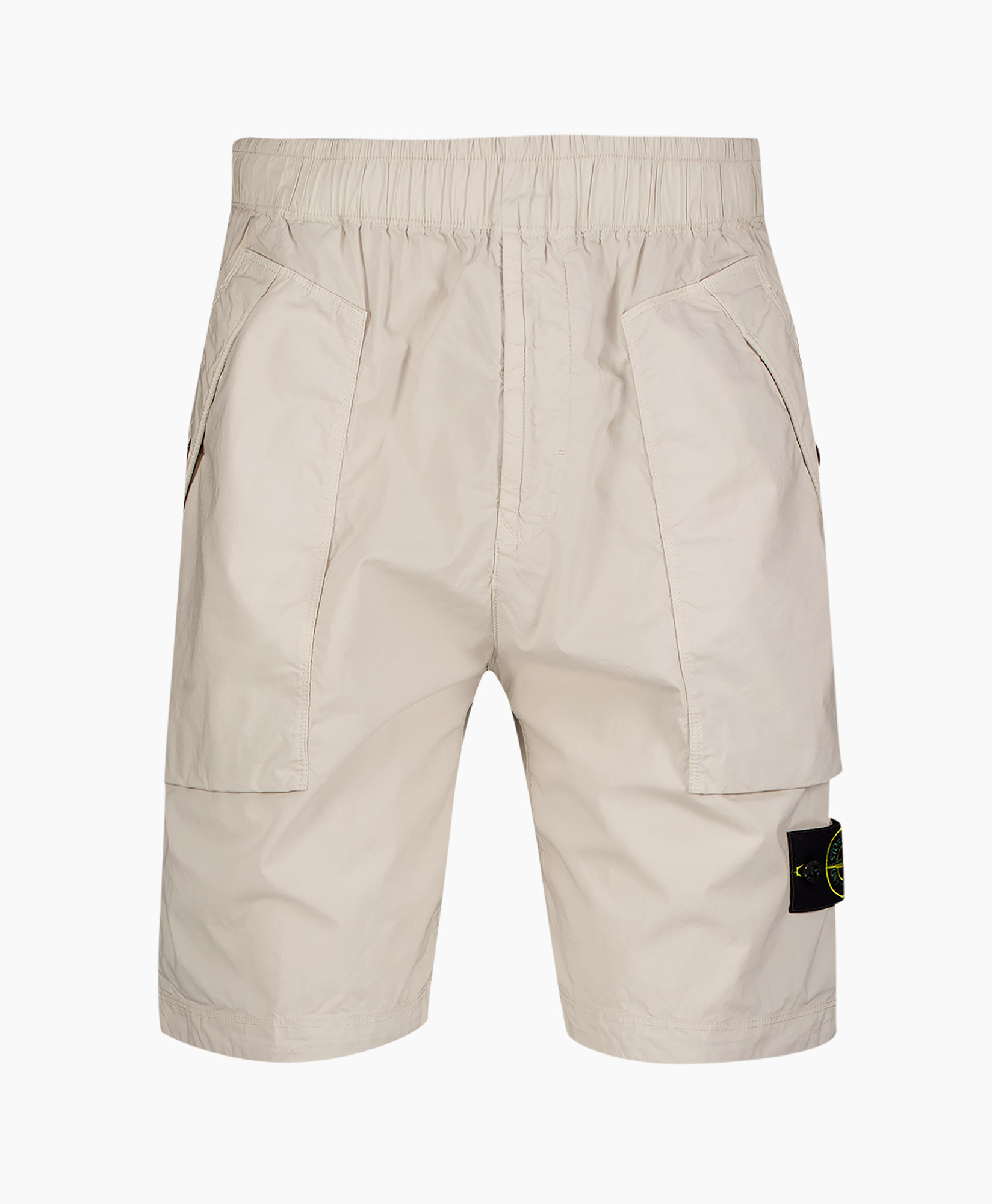 Korte Broek L100009 S00 Beige van Stone Island zet direct de toon voor je zomergarderobe. Deze short komt in een lichte zandkleur en heeft een relaxte pasvorm die comfort biedt. De elastische tailleband zorgt voor een perfecte zit. Grote opgestikte zakken aan de voorkant en de kenmerkende cargozak geven de short functionaliteit.