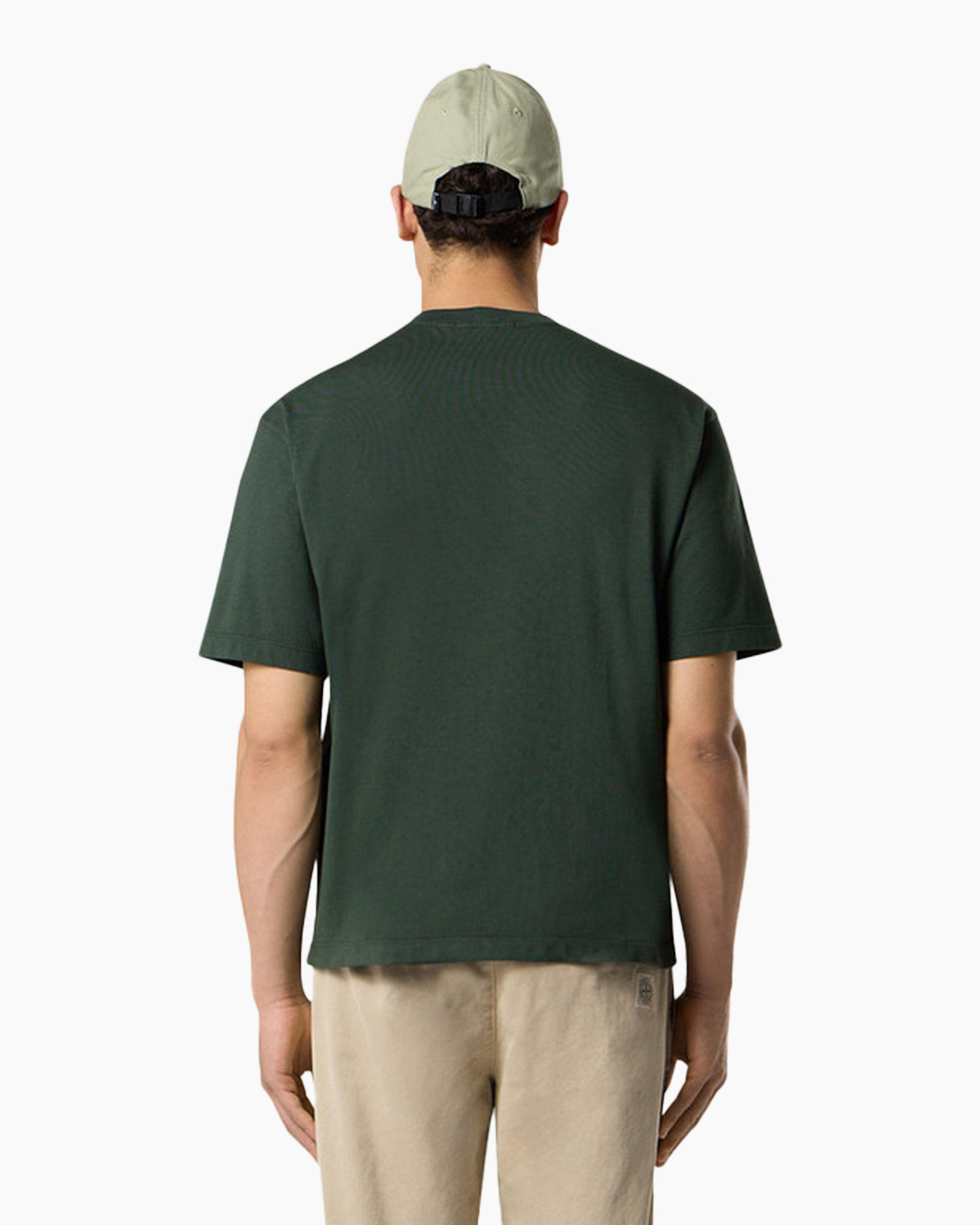 Hier zie je T-shirt Korte Mouw 2100025 S01 Groen van Stone Island, een essentieel kledingstuk voor je dagelijkse rotatie. Dit klassiek gesneden T-shirt is uitgevoerd in een diepe, bosgroene kleur die direct de aandacht trekt. De pasvorm is recht en biedt volop draagcomfort, afgemaakt met een nette ronde kraag. Je ziet direct het herkenbare vierkante patch logo van Stone Island, subtiel geplaatst op de linkerborst.
