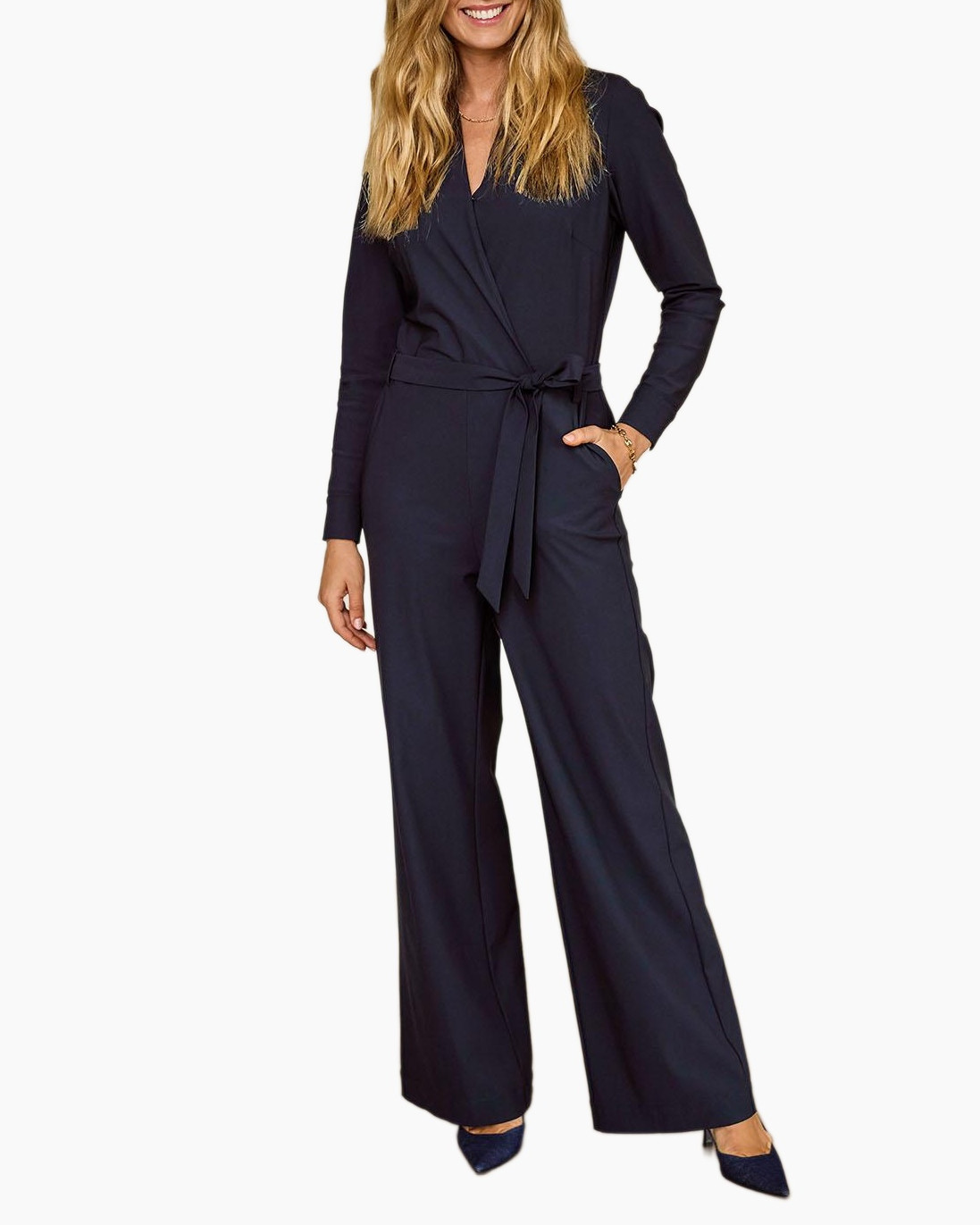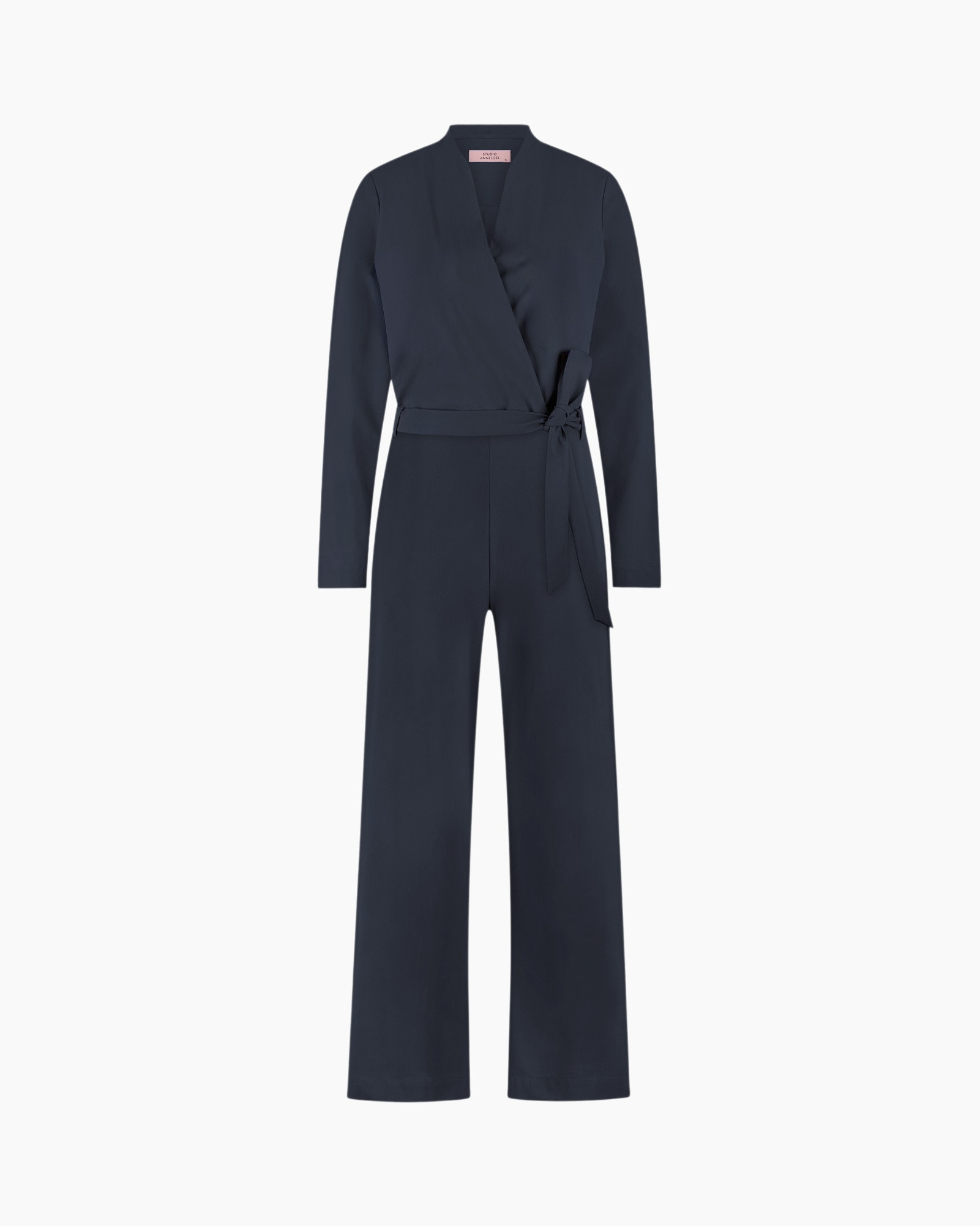Maak kennis met de Jumpsuit Nadia Jumpsuit Donker Blauw van Studio Anneloes, een compleet kledingstuk dat je direct een verzorgde uitstraling geeft. Je draagt hem gemakkelijk door de fijne pasvorm en soepele stof die comfort biedt gedurende de dag. Deze jumpsuit heeft een wrap-over bovenkant met een V-hals, wat een verzachtende lijn creëert. De lange mouwen hebben netjes afgewerkte manchetten met een kleine knoopsluiting. Rond de taille knoop je een bijpassende ceintuur, die je silhouet op een prettige manier benadrukt. De rechte, wijde pijpen vallen soepel naar beneden en geven je alle bewegingsvrijheid. Praktische steekzakken aan de zijkanten maken dit item af, perfect voor kleine persoonlijke spullen. De diepe donkerblauwe kleur maakt dit een veelzijdige keuze voor diverse gelegenheden. Dit kledingstuk voelt prettig op de huid en zit altijd goed.