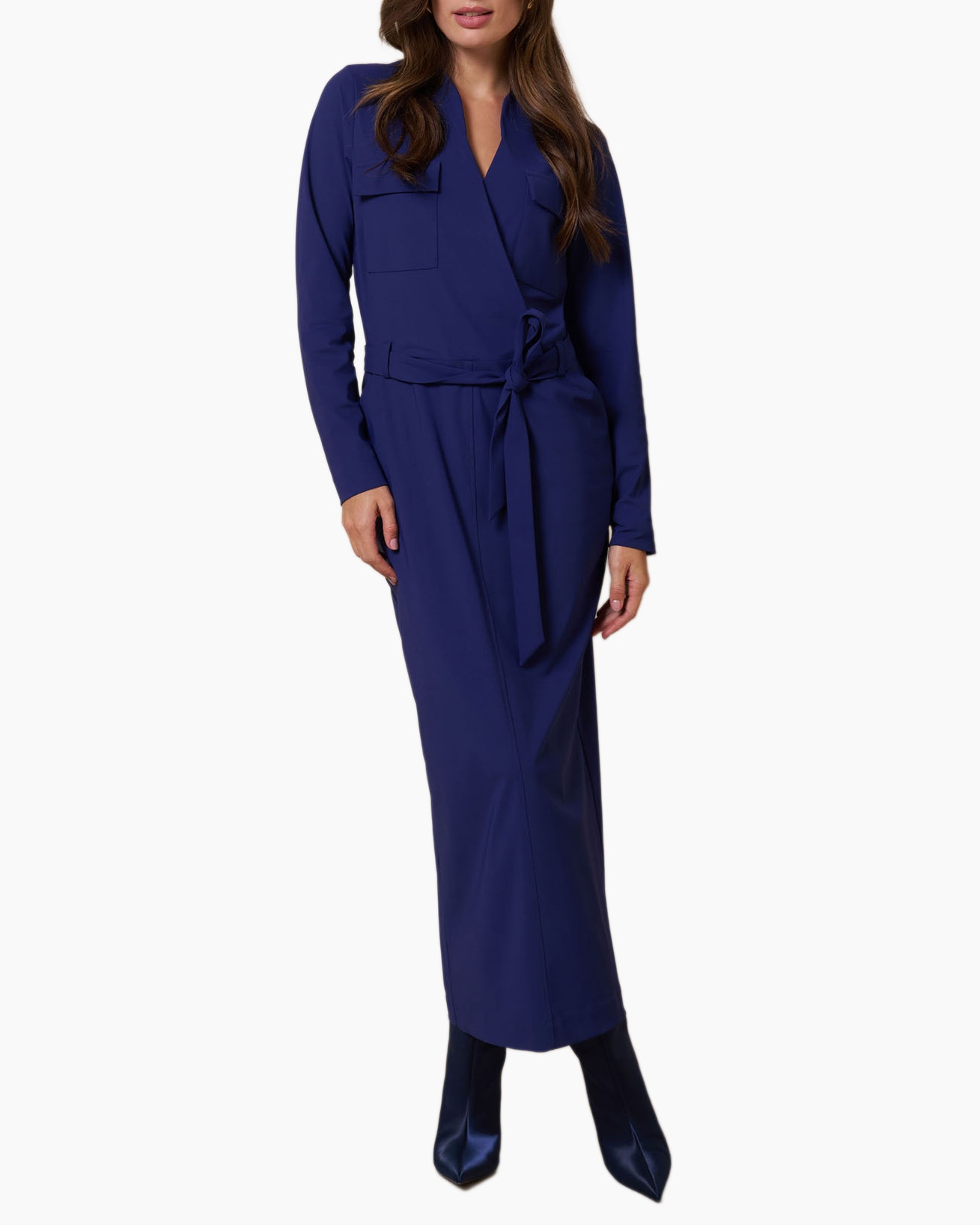 Je maakt direct een statement met de Jurk Jette Cargo Dress Donker Blauw van Studio Anneloes, een kledingstuk dat jou een krachtige uitstraling geeft. Deze jurk heeft een lange, recht vallende pasvorm die jouw figuur perfect volgt zonder te knellen. De V-hals en de overslag zorgen voor een flatterend silhouet. Je regelt de taille nauwkeurig met het bijpassende strikceintuur. De diepe, donkerblauwe kleur is intens en biedt veel combinatiemogelijkheden.