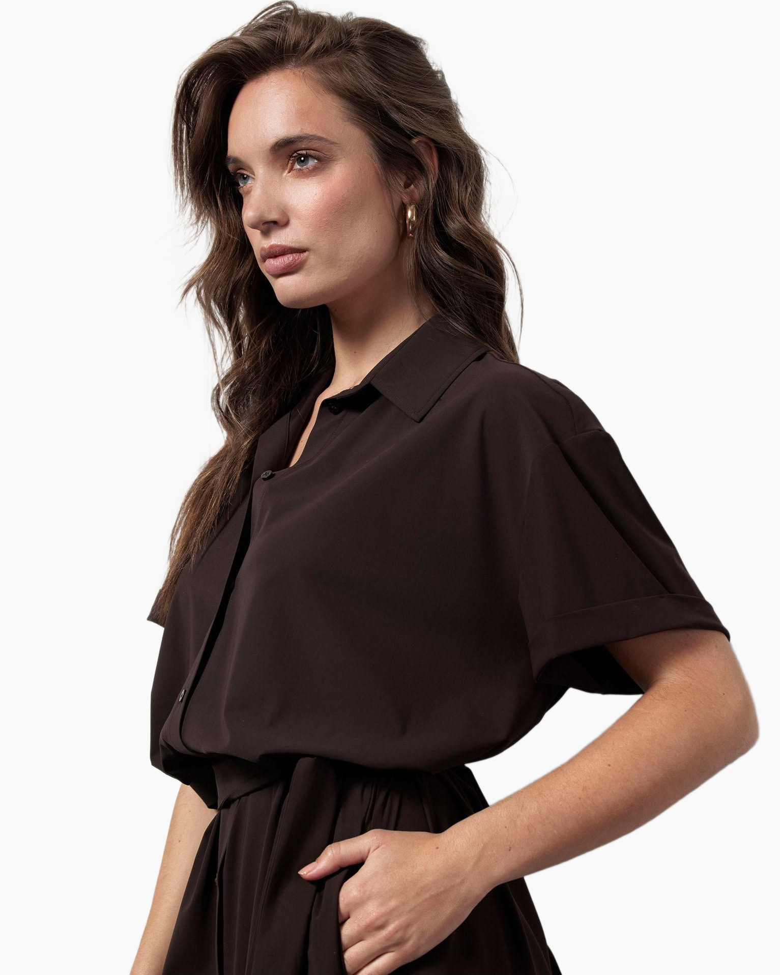 +5 spaarpuntenBen je op zoek naar een veelzijdig kledingstuk dat je in een handomdraai draagt? De Jurk Louna Blouse Dress Donker Bruin van Studio Anneloes is dan precies wat je zoekt. Deze blousejurk heeft een diepe, donkerbruine kleur die zich makkelijk laat combineren. Je ziet meteen de relaxte pasvorm die toch een verzorgde uitstraling geeft. Draag je de jurk los voor een comfortabele look, of accentueer je taille met het bijpassende strikceintuur? De keuze is aan jou. Met de klassieke kraag en de doorlopende knoopsluiting aan de voorkant is dit een tijdloos item. Praktische steekzakken aan de zijkant bieden ruimte voor je essentials, terwijl de korte mouwen met hun vaste omslag de look compleet maken. De soepele stof zorgt voor een fijne val en draagt prettig. Dit item voegt iets toe aan je collectie.