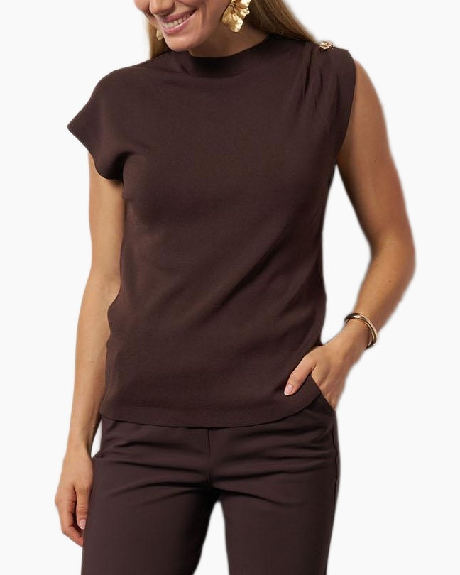 Top Fanny Button Top Donker Bruin