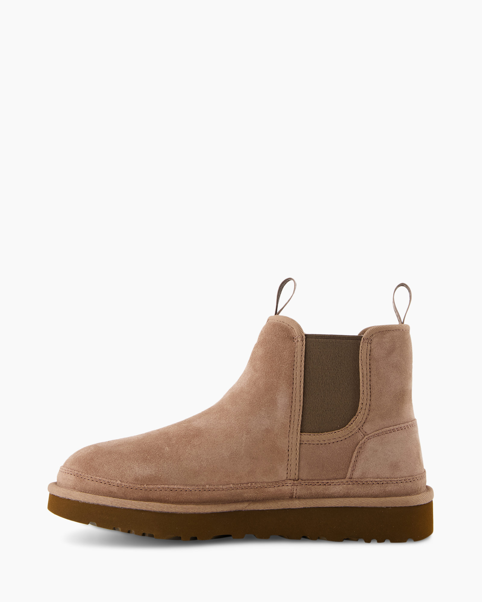De Chelsea Boot Neumel Chelsea Bruin van Ugg combineert stijl met comfort. Deze bruine laars past zich soepel aan de voet aan, dankzij het elastische zijpaneel. De neus en het bovenwerk zijn gemaakt van zacht suède, wat zorgt voor een luxe uitstraling.