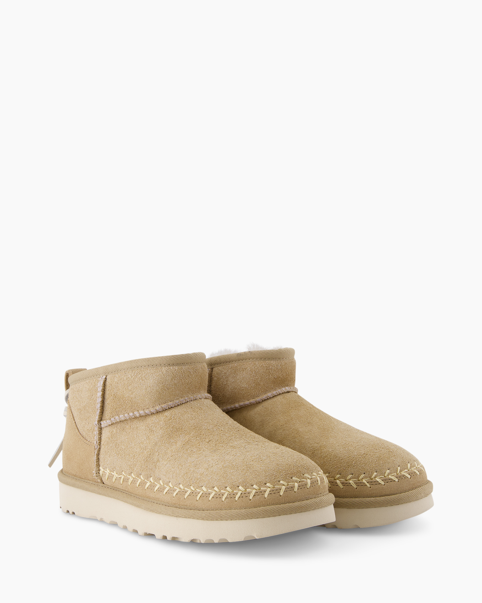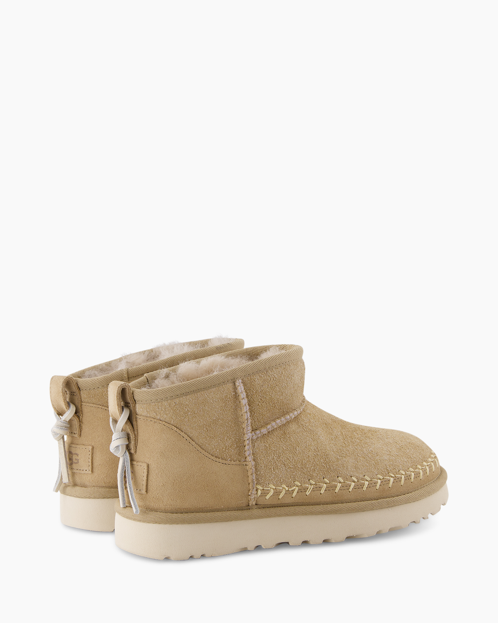 De schoen is vervaardigd uit hoogwaardig suède, wat bijdraagt aan het draagcomfort. Opvallende stiksels verfraaien de zijkant van de laars en geven het ontwerp een unieke touch. De subtiele logo-details aan de achterzijde zijn een kenmerkende toevoeging van Ugg.