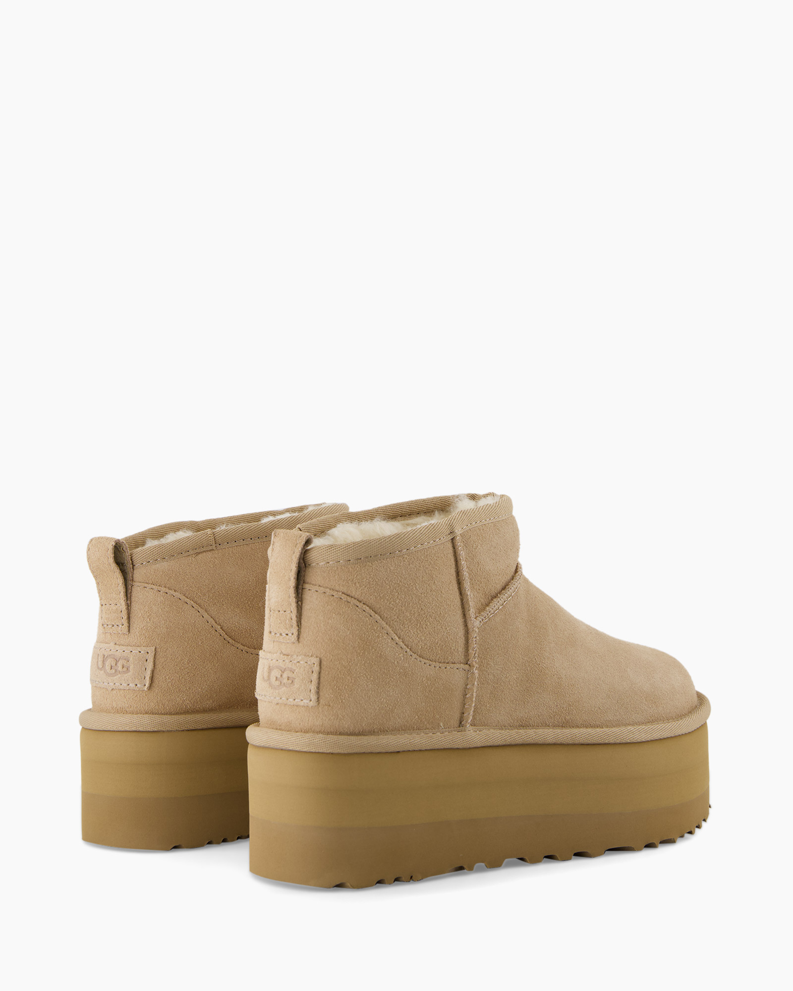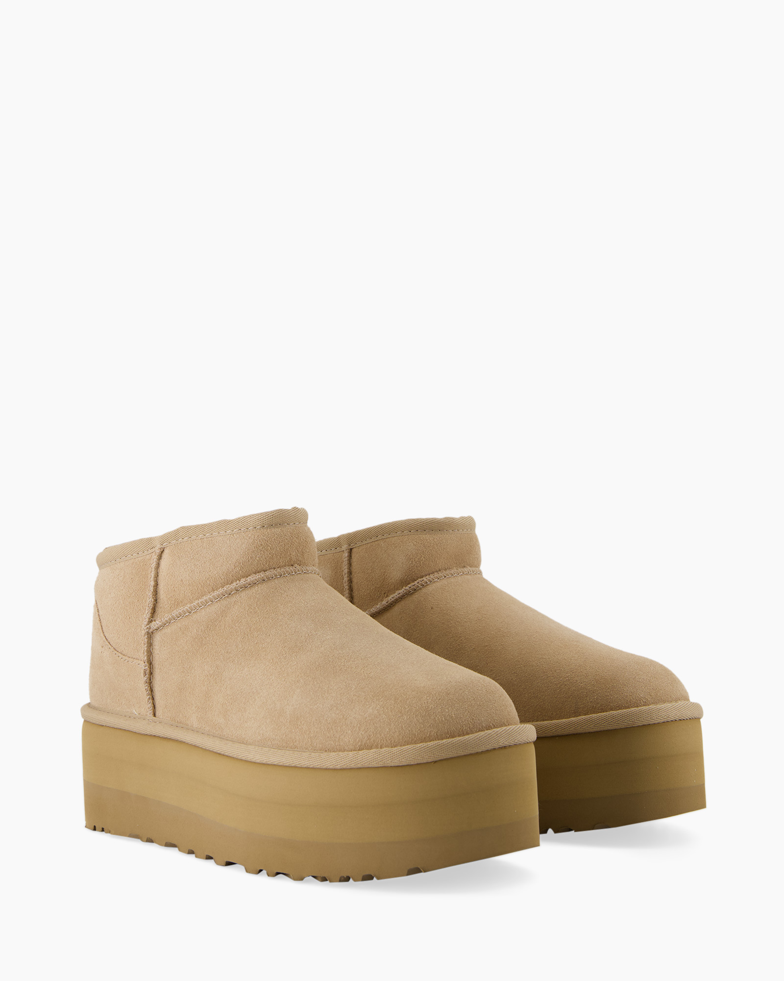 Draag de Enkellaars Classic Ultra Mini Platform Zand met een casual jeans voor een moeiteloze look.