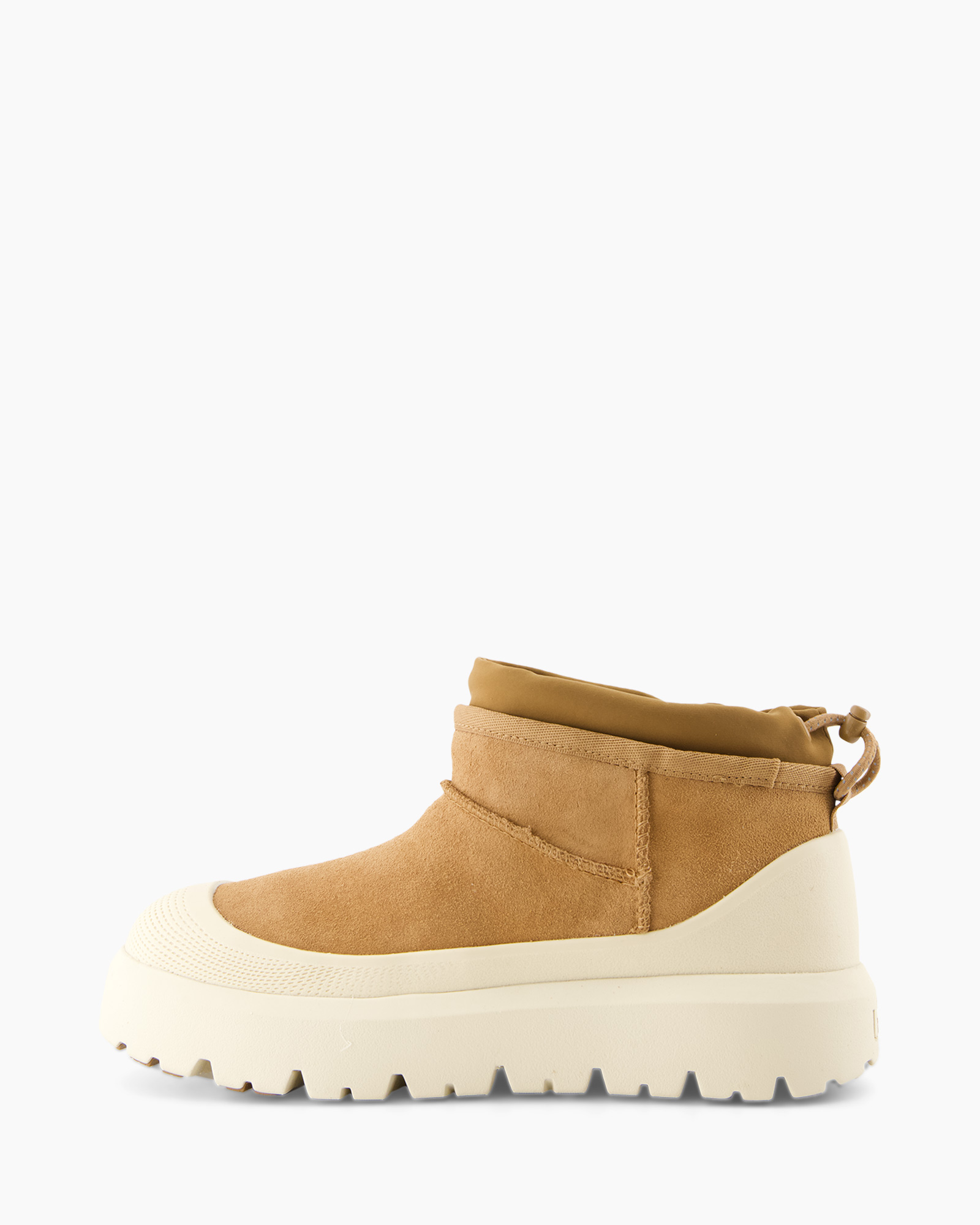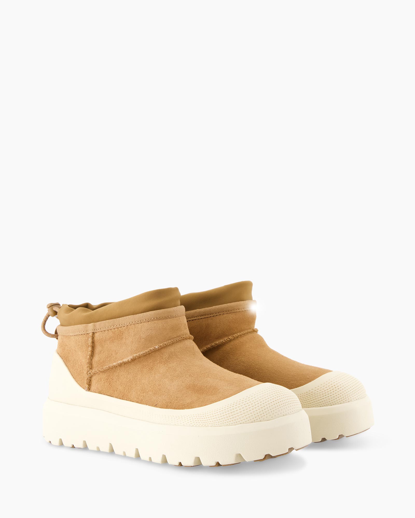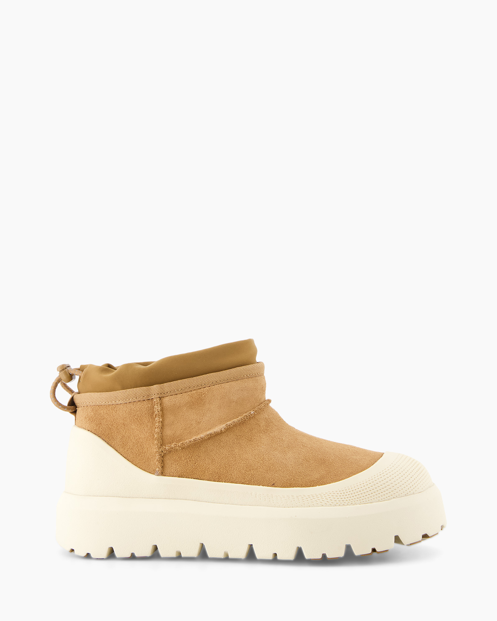 De enkellaars Ultra Mini Weather Hybrid Camel van Ugg combineert comfort met functionaliteit. Deze camel-kleurige enkellaars biedt een stevige pasvorm, ideaal voor diverse weersomstandigheden. De karakteristieke uitstraling van Ugg maakt het een veelzijdige keuze voor je garderobe.