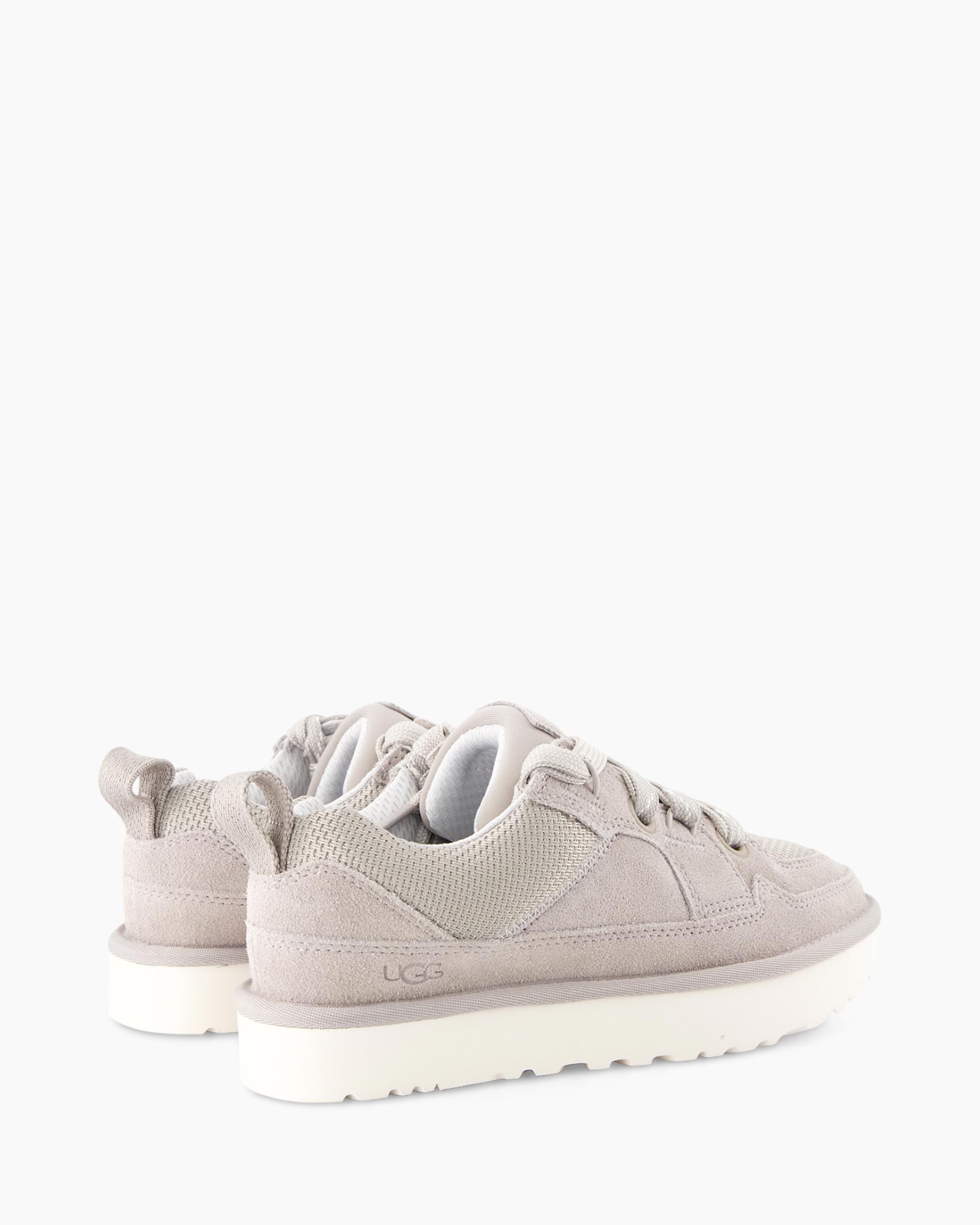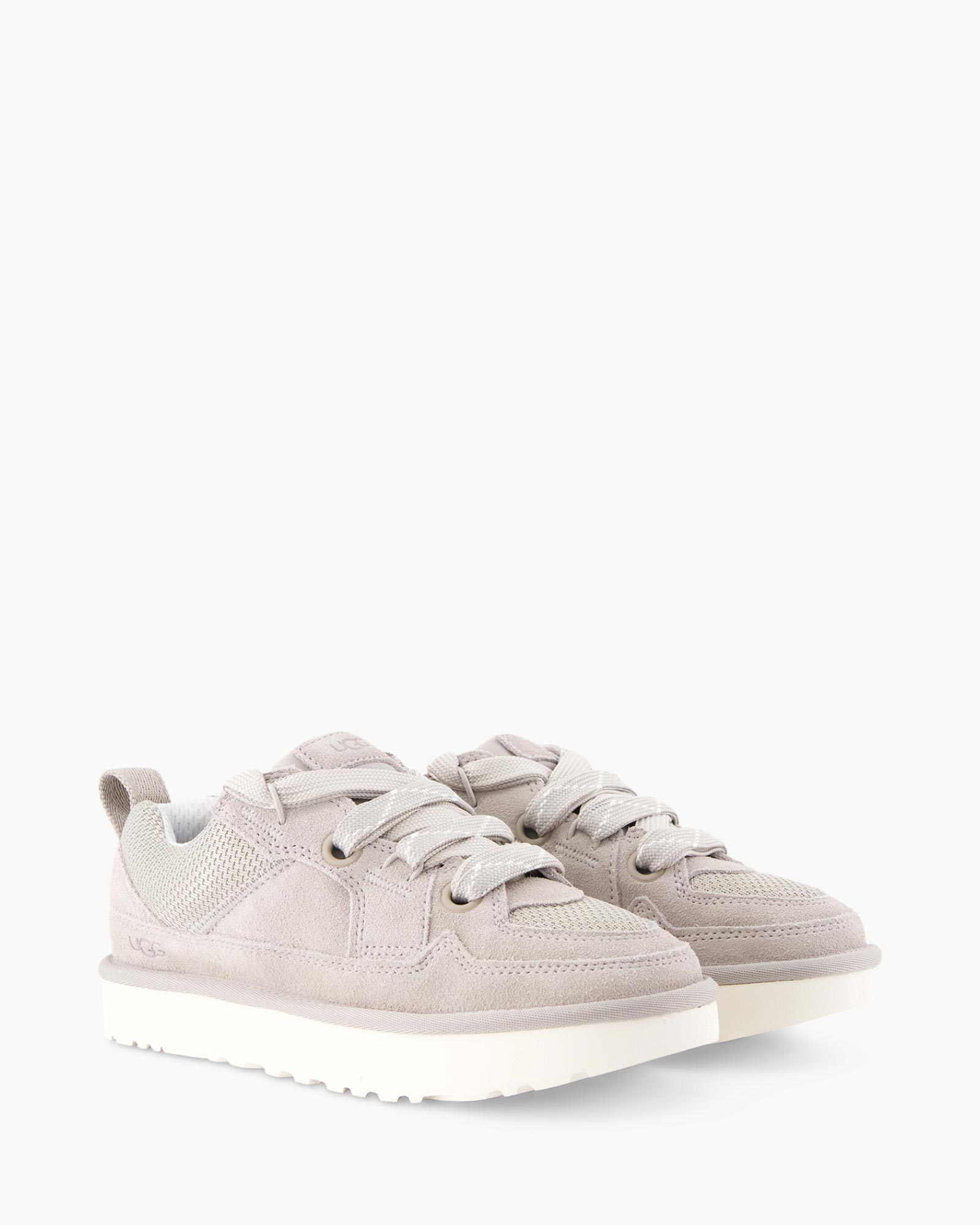 Deze Sneaker Lo Lowmel Grijs van Ugg is een stevige schoen voor elke dag. Het model combineert suede met textiel in een lichte tint grijs. Je strikt de schoen met de brede veters die over de bovenkant lopen. De dikke zool geeft de schoen een robuust uiterlijk.