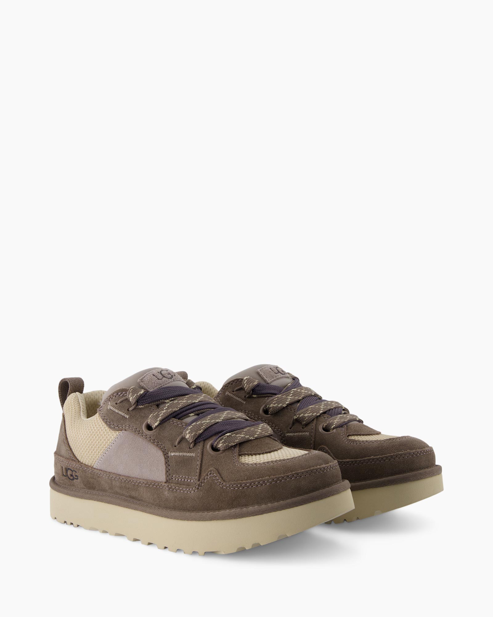 Deze sneaker is vervaardigd uit stevig materiaal dat voor optimaal draagcomfort zorgt. De veters en het subtiele Ugg-logo aan de zijkant zijn smaakvolle details die bijdragen aan de fraaie afwerking. De combinatie van verschillende texturen in taupe tinten voegt een moderne touch toe aan het ontwerp.
