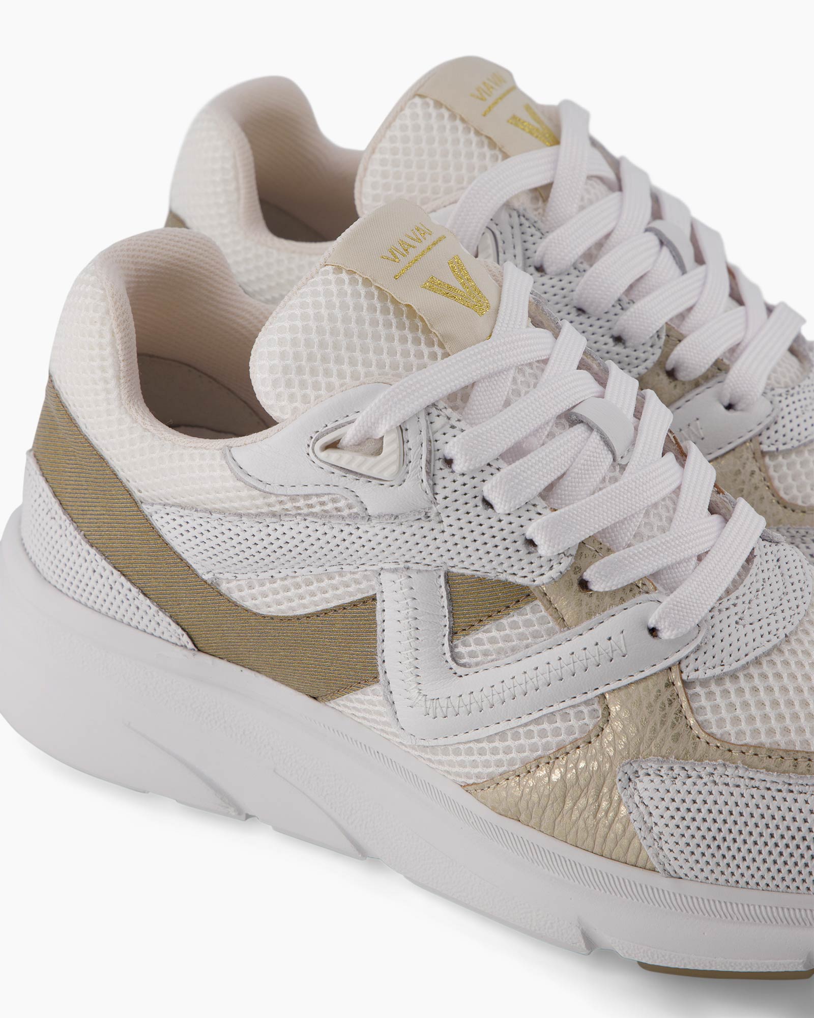 De perfecte mix van stijl en comfort. Casual en toch uniek. We’re talking about Vic Kyro. Deze VIA VAI sneaker zit vol met verrassende elementen. Het subtiel geperforeerde leer geeft een extra speciale look, terwijl het hoogwaardige mesh zorgt voor een ademend en licht gevoel. De belijningen in deze beige sneakers zorgen voor een dynamische uitstraling.