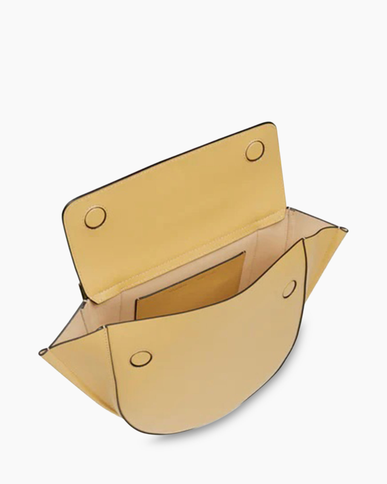 Je gaat goed voor de dag met de Crossbody Tas Hortensia Medium Bruin van Wandler die bij elke gelegenheid past. Deze tas heeft een zachte gele kleur en is gemaakt van glad leer. De flap aan de voorkant houdt al je spullen op hun plek. Je wisselt makkelijk tussen de handgreep en de verstelbare schouderband.