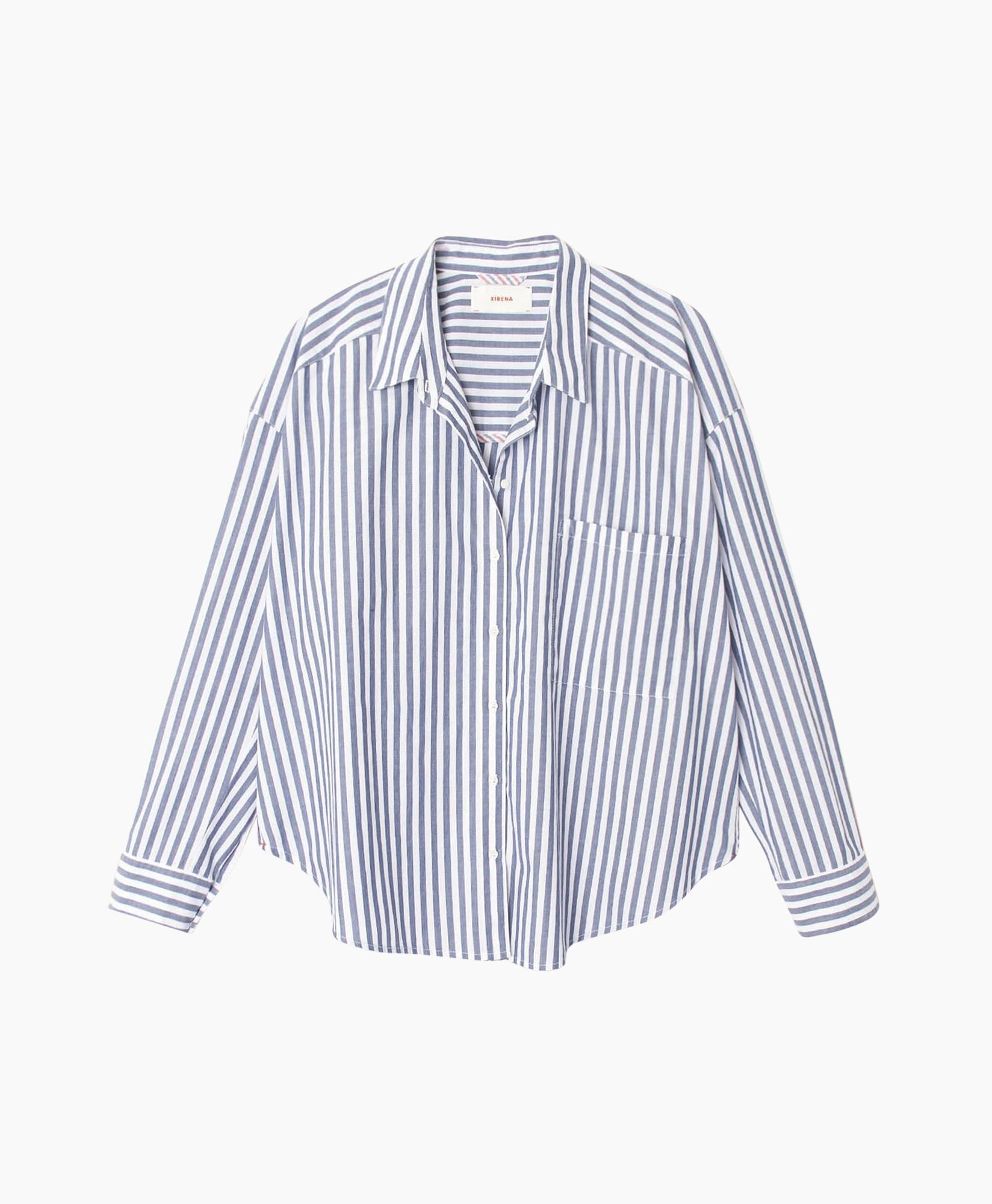 Je zoekt een veelzijdige blouse? Dan is Blouse Jordy Blauw van Xirena exact wat je nodig hebt. Dit shirt heeft een levendig patroon van witte en blauwe verticale strepen. De pasvorm valt ruim en relaxed, wat zorgt voor een comfortabel gevoel. Aan de voorkant zie je een klassieke kraag en een discrete borstzak, terwijl je de blouse met de doorlopende knopenlijst makkelijk open of dicht draagt.
