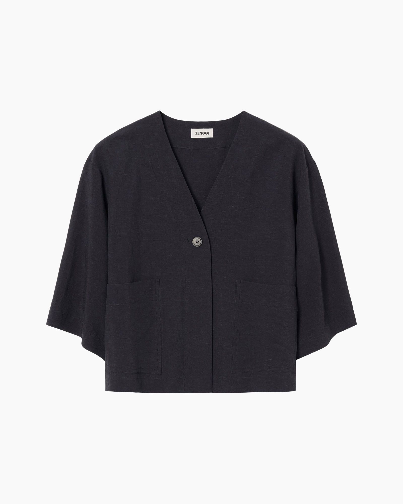 Dit vest is vervaardigd van een hoogwaardige linnen viscoseblend, wat zorgt voor ultiem draagcomfort. De losvallende pasvorm geeft het een eigentijdse look, terwijl de eenvoudige sluiting met een enkele knoop een minimalistische touch biedt. Het ontwerp met driekwart mouwen en royale zakken voegt een praktisch element toe aan het geheel. Geen opvallende logo's of prints, waardoor de focus volledig ligt op de elegante eenvoud.